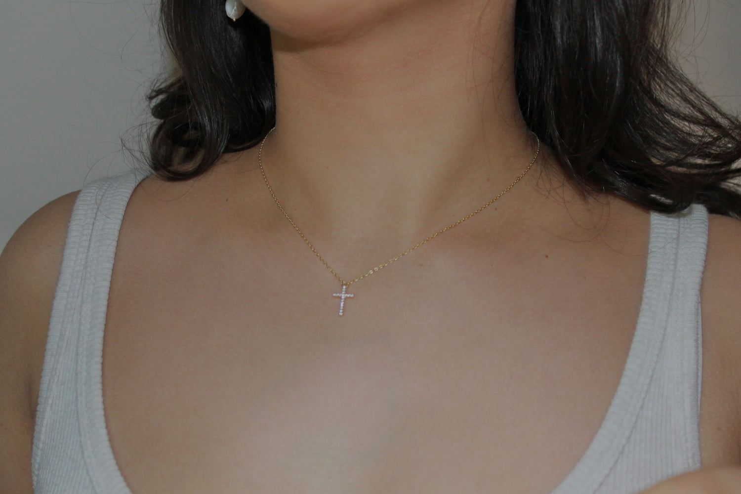 Fine Necklace With CZ Cross Pendant